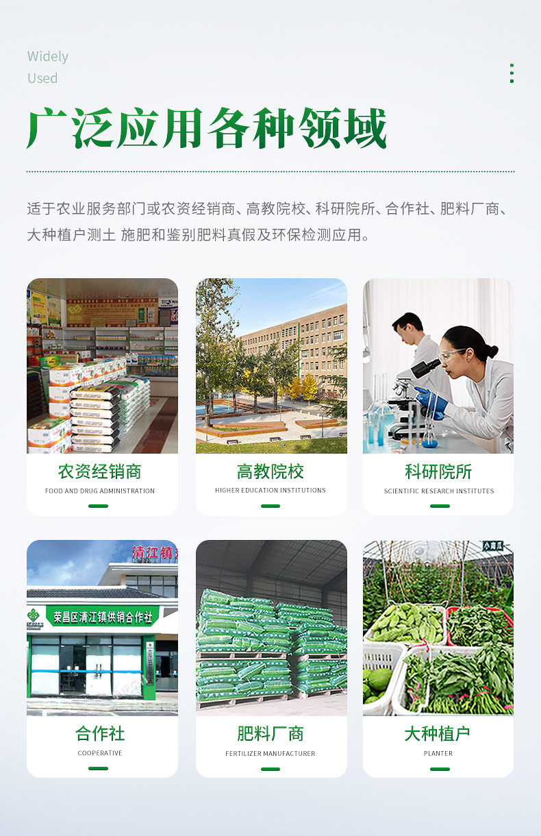 ★2、可檢測各種土壤、肥料、作物、食品、水質、環境等共200多個測試項目,一機多用,功能齊全。
