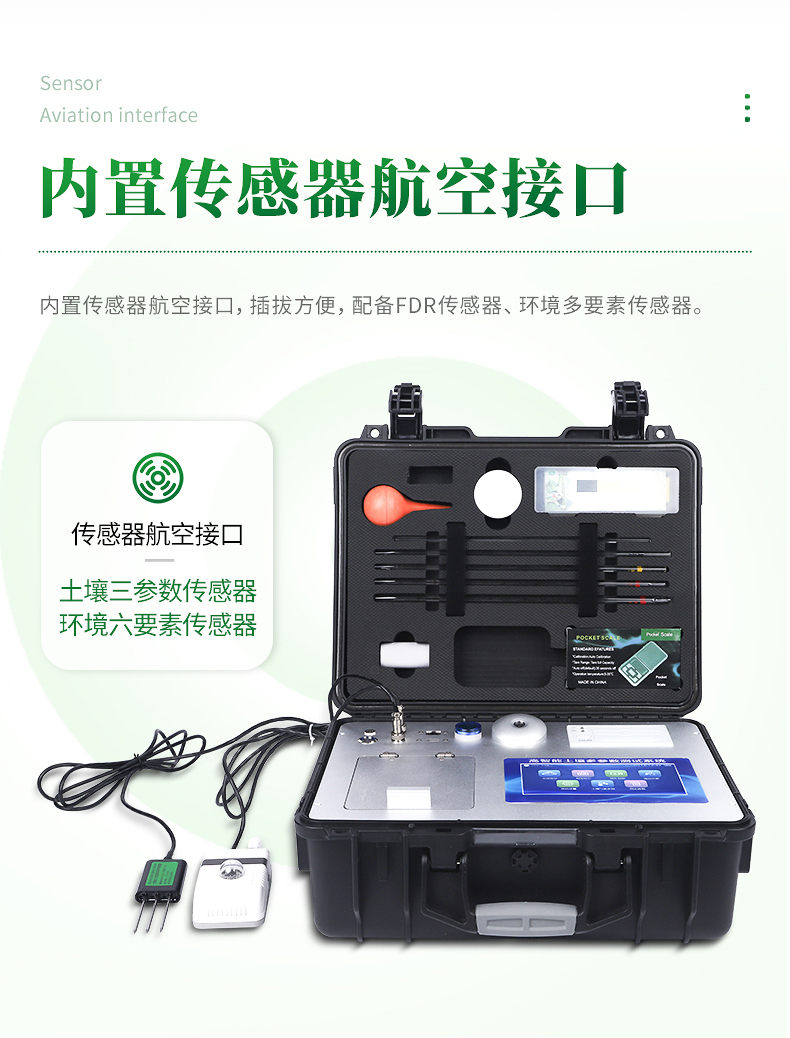配套齊全:該儀器集藥、器、儀為一體,攜帶方便,相當于一個小型移動實驗室,無需用戶自配附件,亦可靈活野外流動測試。適于農業服務部門或農資經銷商、高教院校、科研院所、合作社、肥料廠商、大種植戶測土施肥和鑒別肥料真假及環保檢測應用。