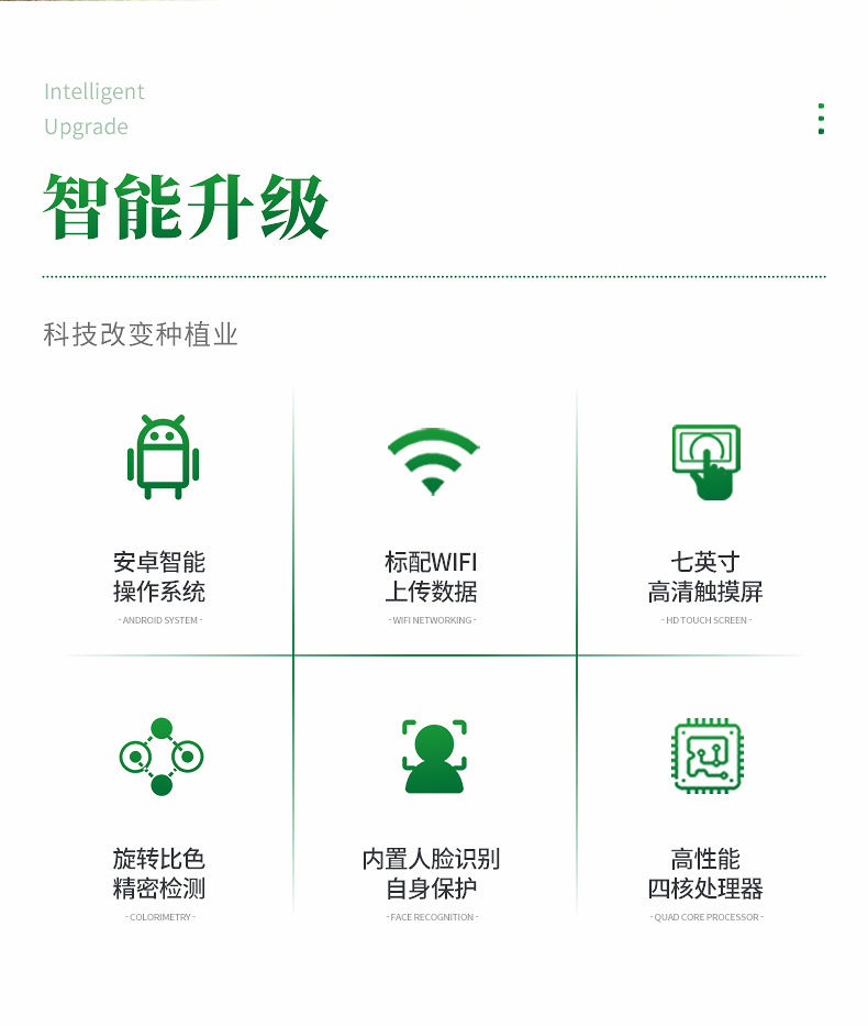 【產品簡介】可檢測各種土壤、肥料、作物、食品、水質、環境等測試項目,一機多用,功能齊全,配備土壤三參數傳感器、環境六要素傳感器