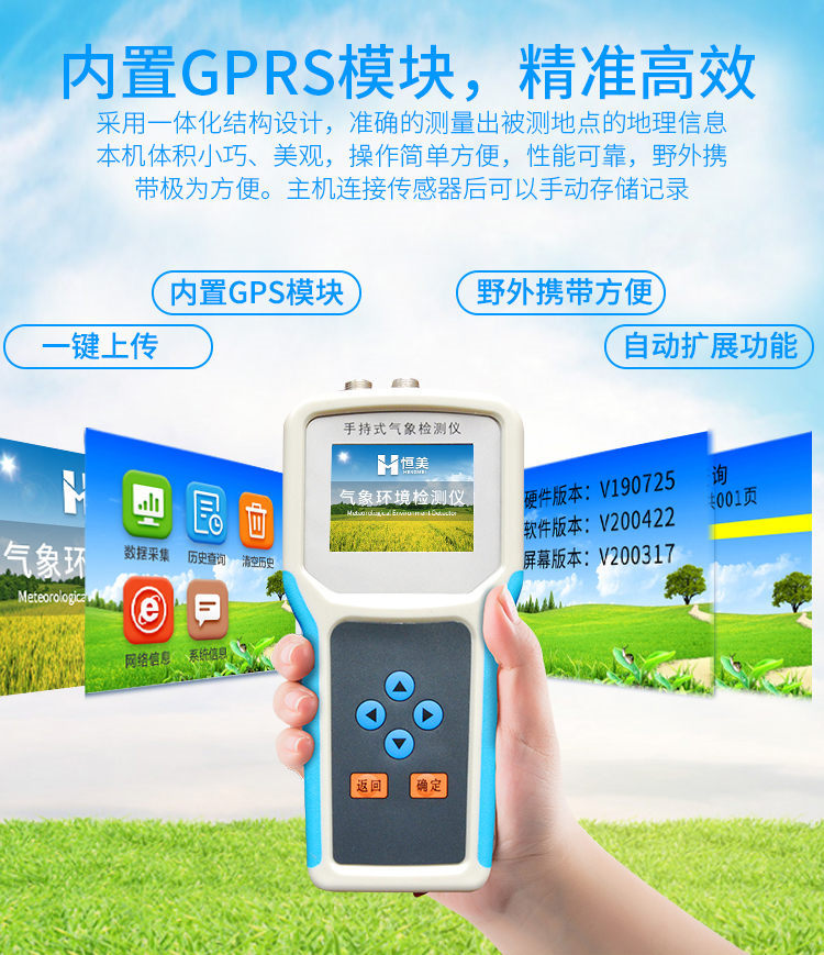 采用一體化結構設計,內置GPS模塊,4G模塊,外置SD卡,能準確的測量出被測地點的地理信息,界面除顯示所測環境參數、存儲數據外,還可顯示測點的經緯度。通過內置的GPRS一鍵上傳被測點的環境因子測量數據等。同時還可以通過外置SD卡直接把數據導出到電腦上。(可選)