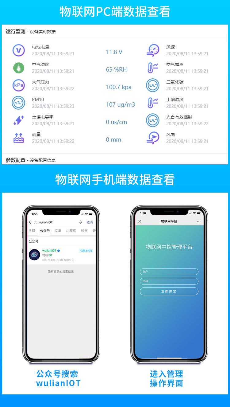 【產品簡介】觀測空氣溫度、空氣濕度、光照強度、二氧化碳濃度、光合有效輻射、土壤溫度、土壤濕度、風速、風向、土壤鹽分等10個環境參數氣象要素
