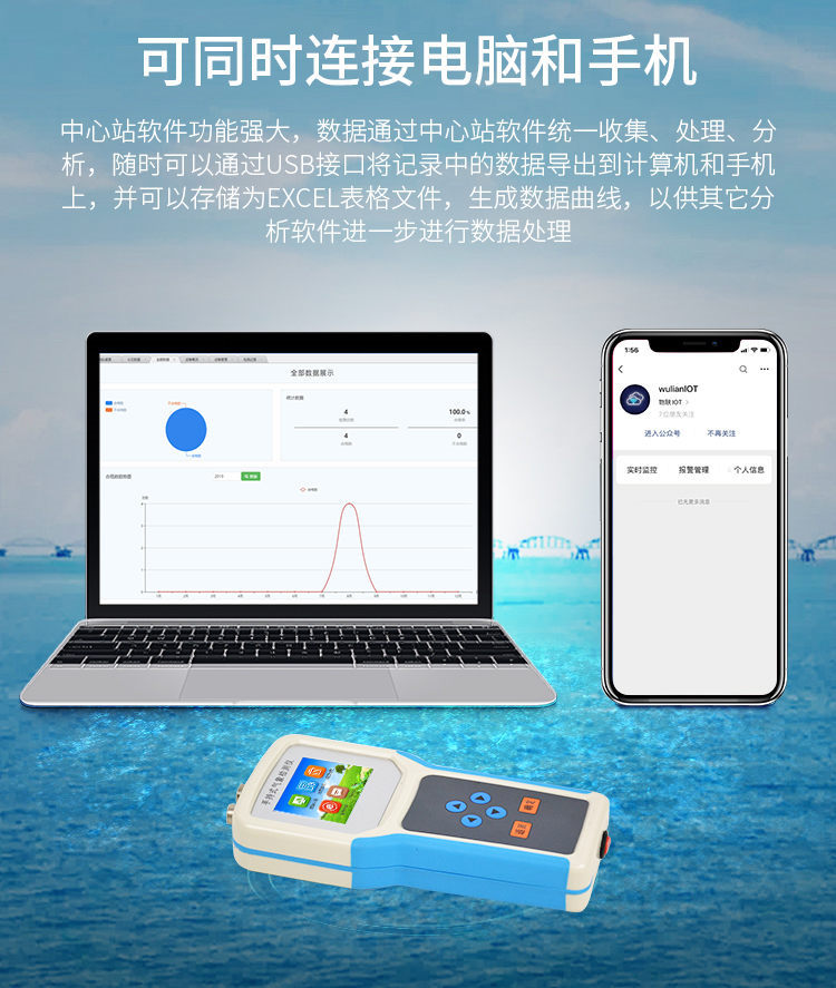 中心站軟件功能強大,數據通過中心站軟件統一收集、處理、分析,隨時可以通過USB接口將記錄中的數據導出到計算機上,并可以存儲為EXCE表格文件,生成數據曲線,以供其它分析軟件進一步進行數據處理。具有設置超限區域著色功能,超限數據變色預警,可作為環境評價的一個依據。