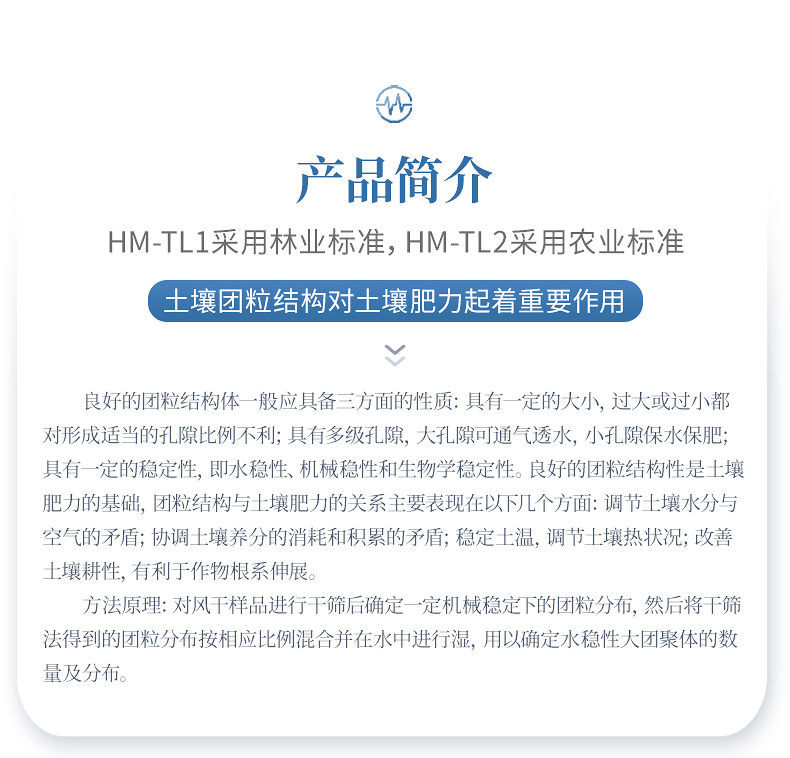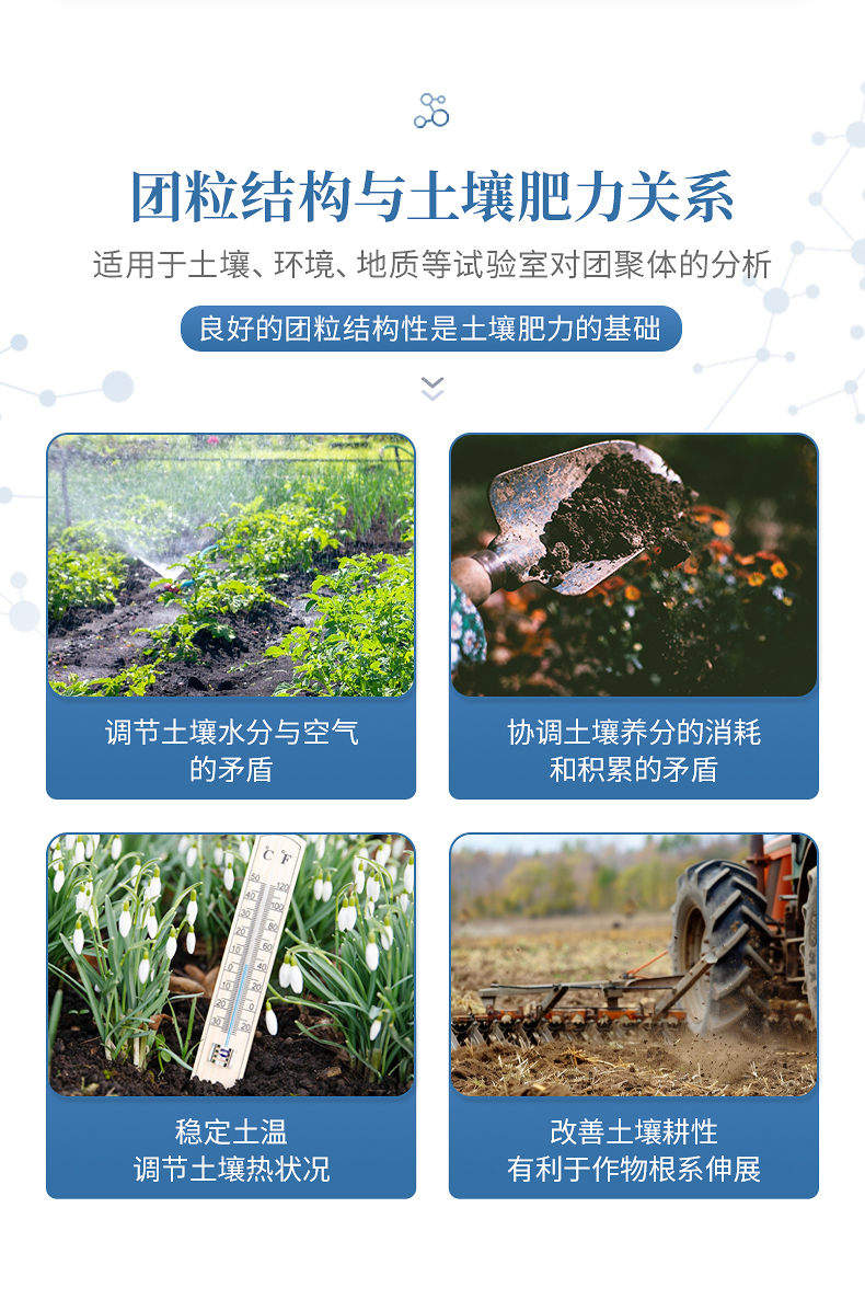 1、土壤團粒結構對土壤肥力起著重要作用。良好的團粒結構體一般應具備三方面的性質(zhì):具有一定的大小,過大或過小都對形成適當?shù)目紫侗壤焕?具有多級孔隙,大孔隙可通氣透水,小孔隙保水保肥;具有一定的穩(wěn)定性,即水穩(wěn)性、機械穩(wěn)性和生物學穩(wěn)定性。良好的團粒結構性是土壤肥力的基礎,團粒結構與土壤肥力的關系主要表現(xiàn)在以下幾個方面:調(diào)節(jié)土壤水分與空氣的矛盾;協(xié)調(diào)土壤養(yǎng)分的消耗和積累的矛盾;穩(wěn)定土溫,調(diào)節(jié)土壤熱狀況;改善土壤耕性,有利于作物根系伸展。土壤團粒分析儀適用于土壤、環(huán)境、地質(zhì)等試驗室對團聚體的分析。
